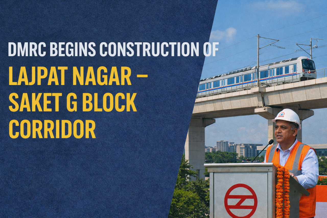 The Delhi Metro Rail Corporation (DMRC) has officially commenced construction work on the much-awaited Lajpat Nagar–Saket G Block Corridor, marking a significant milestone under Delhi Metro Phase-IV. This corridor is the first non-priority section of Phase-IV where physical construction has begun, highlighting DMRC’s steady progress in expanding Delhi’s urban transport network. The project is expected to bring faster, cleaner, and more efficient connectivity to South Delhi.